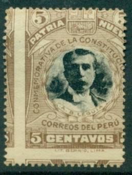 1919 PATRIA NUEVA de Augusto B. Leguía. Esta emisión es un claro ejemplo de cuando una administración postal no ejerce una supervisión en el proceso de confección de los sellos postales. La Dirección General de Correos nunca se pronunció sobre este “festival de errores y variedades” aun cuando era de largo conocido que otros intereses hicieron aflorar las anomalías en la serie.
