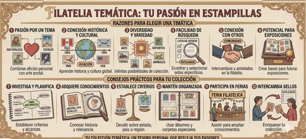 - Facilidad de búsqueda: Al enfocarse en un tema específico, es más fácil encontrar y seleccionar las estampillas deseadas para tu colección.